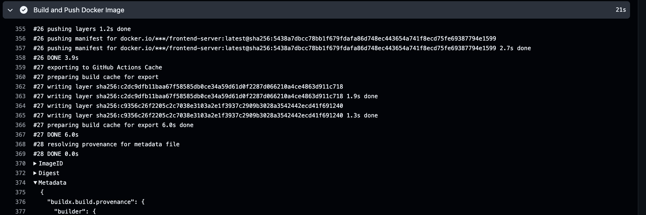 turbo prune을 활용해 모노레포 내 전체 패키지가 아닌, 서비스 실행에 필요한 최소한의 컨텍스트만 추출하여 빌드 프로세스를 가볍게 유지했습니다.type=gha) 전략을 통해 종속성 변화가 없을 시 중복 연산을 건너뜁니다. 이를 통해 전체 배포 과정을 21초까지 단축하여, 유저의 불편 사항을 지연 없이 개선할 수 있는 환경을 만들었습니다.